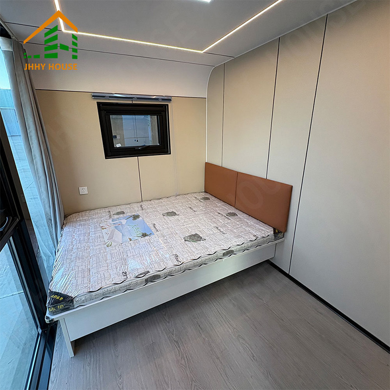 | Sistema de decoração de interiores | Forro suspenso (placa OSB + placa de fibra de carbono) Revestimento da parede interna (placa OSB + placa de fibra de carbono) Piso para interiores (piso com sistema de encaixe SPc) Sistemas de aquecimento de piso radiante Porta do banheiro (porta de vidro deslizante para privacidade) Lavatório (personalizado em mármore) Paredes do banheiro (placa de encaixe SPC) Piso do banheiro (azulejos) Móveis como camas, mesas de cabeceira, sofás, etc. (podem ser personalizados) |